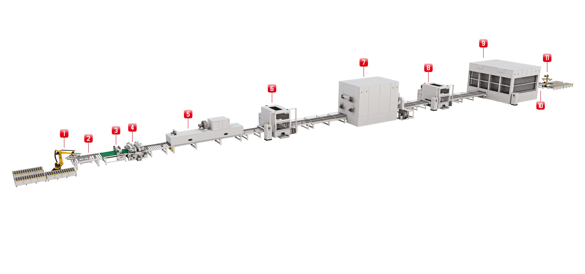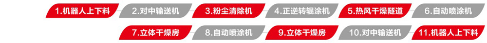 預輥實色水性中涂,再通過兩次水包水薄噴待干的工藝配合,一來將色差降至最低,二來避免底層漆膜水份透不來形成假干的現象。后段配平鋪式立體干燥房,避免了厚噴漆膜流掛的現象,同時實現油漆快速干燥,將能耗降至最優。
