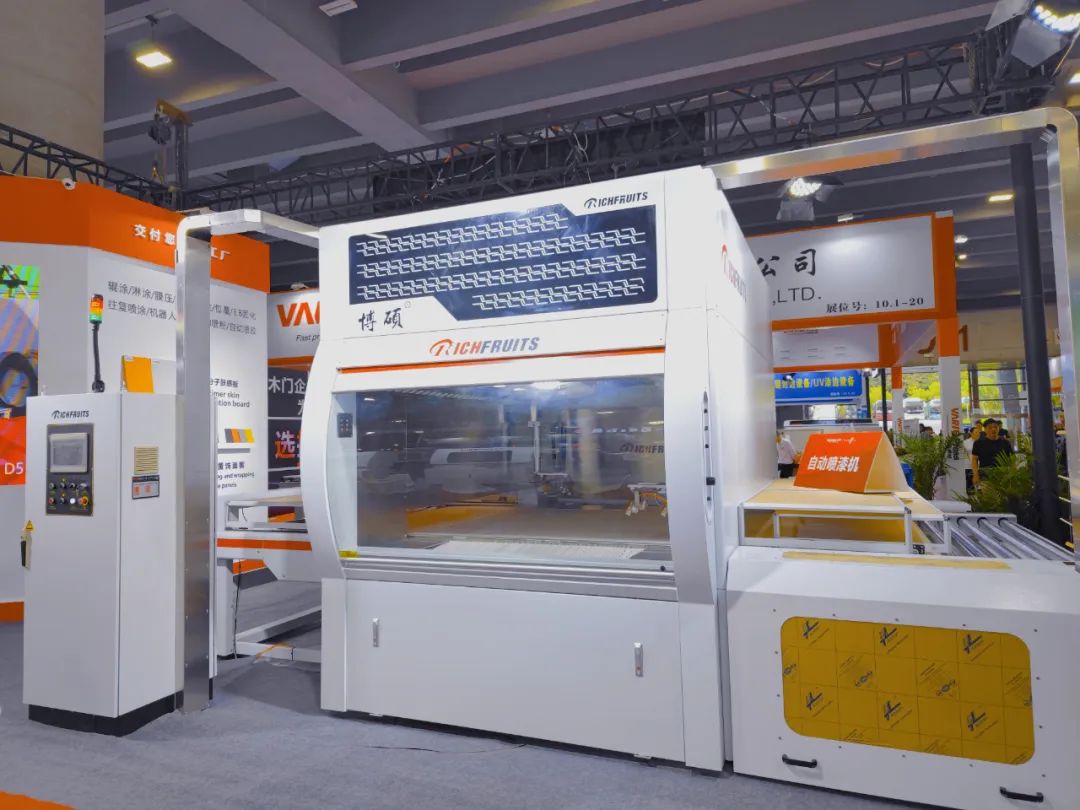 適用于實木家具、實木復合門、美式櫥柜、套房家具、衛浴柜、展示柜、工藝品等板式家具工件的平面和四個側邊,針對 UV、PU、AC、NC和水性漆等,以更高質量、更細膩的表面效果進行連續自動噴漆,實現節能、環保和減少人工,提高產品質量和生產效率。