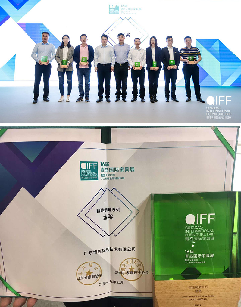 博碩榮獲第16屆QIFF青島國際家具展智能制造系列金獎,感謝山東省家具協會、深圳市家具行業協會、評委會及廣大用戶的厚愛,我們將用更大的努力更好的服務更優質的產品回報大家。
