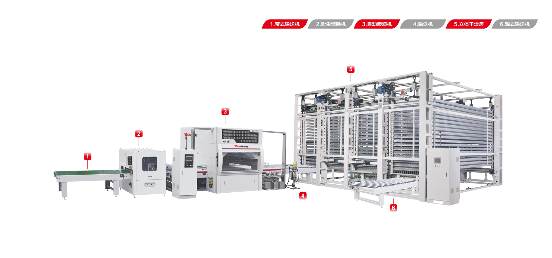 適用于板式家具、實木門、櫥柜門、工藝品、裝飾板、硅酸鈣板、玻鎂板、水泥纖維板的板式加工件的平面和四個側(cè)邊進行高質(zhì)量、大批量連續(xù)噴漆。