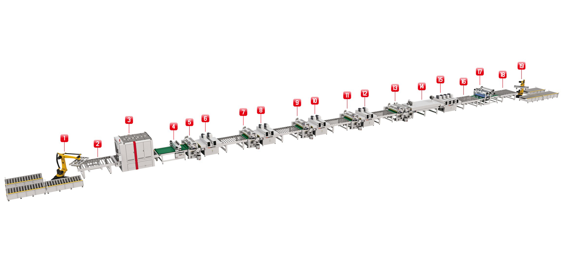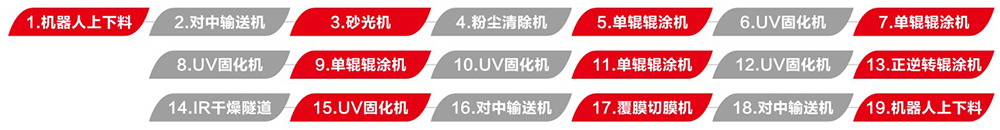實色UV板輥涂,兼容醫療板和抗菌板的產品種類,采用五面輥涂的工藝實現薄涂多道的的方式,避免深色漆面干不透的現象。配置智控系統,實現一鍵快速換色的功能。